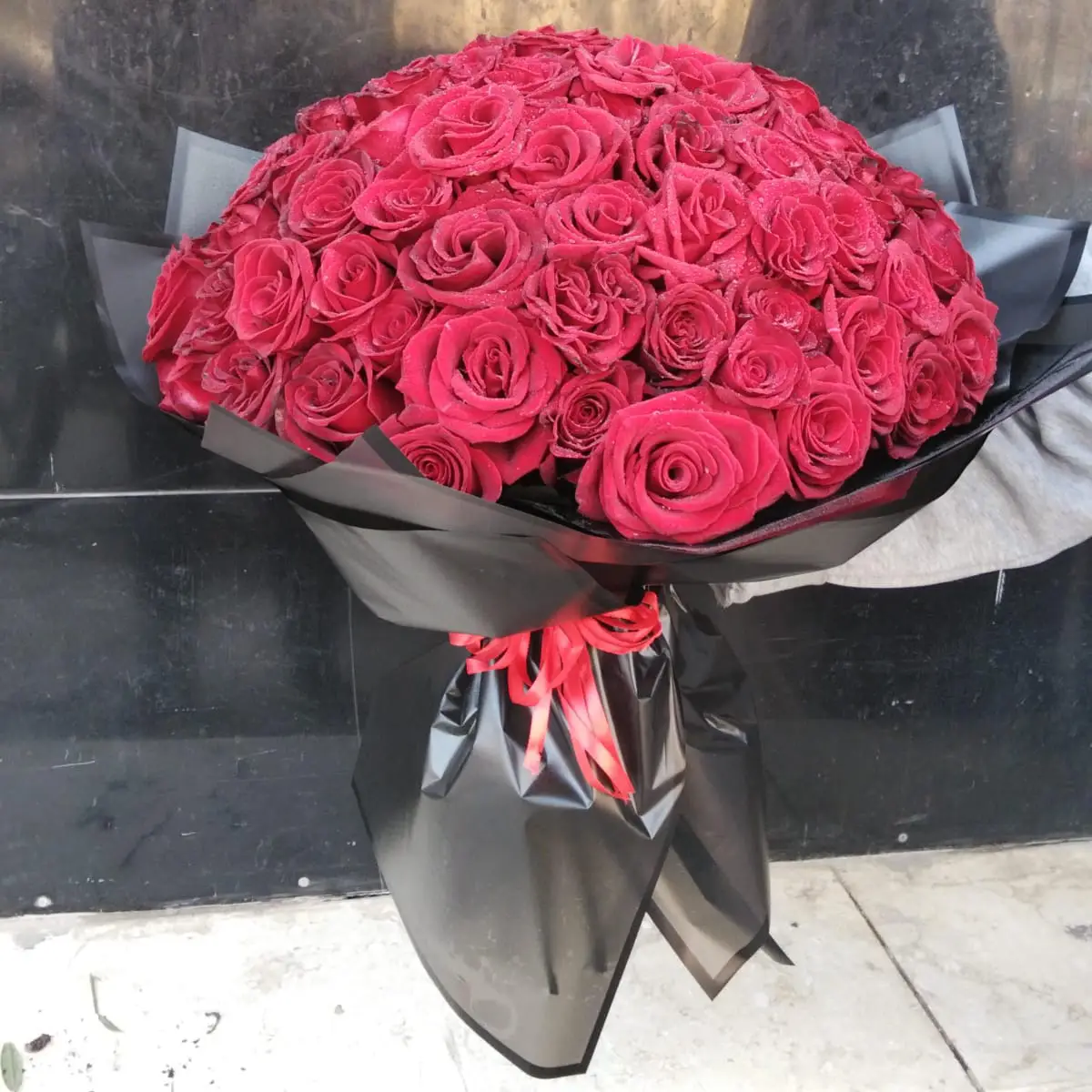 جميع الورود المستخدمة طبيعية وطازجة، ويتم اختيارها بعناية للحفاظ على اللون الأحمر الجذاب والمظهر المتناسق. يتم تنسيق البوكيه يدويًا بواسطة مختصين لضمان توزيع الورود بشكل متوازن يبرز جمال كل وردة دون ازدحام أو عشوائية. هذا التنسيق يجعل البوكيه مناسبًا للإهداء في المناسبات الرومانسية، أعياد الميلاد، ذكرى الزواج، الخطوبة، أو حتى كهدية تقدير وشكر.