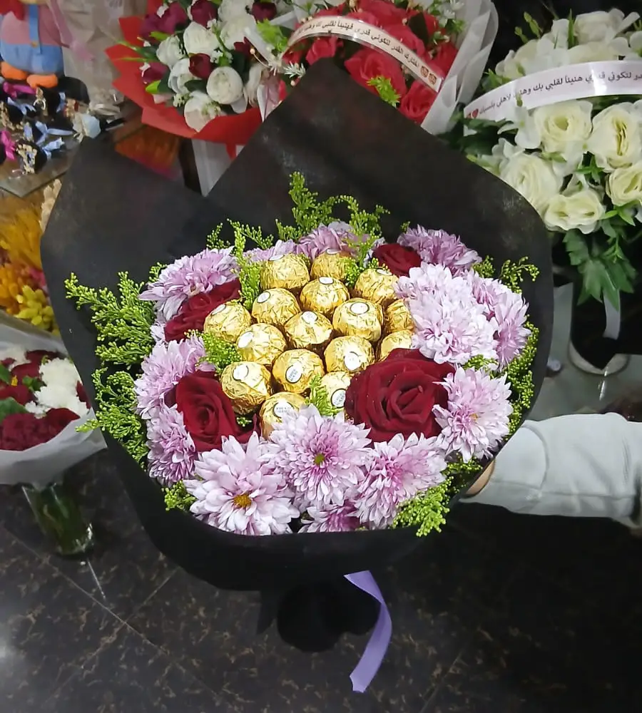 This elegant combo includes a stunning bouquet of pink and white roses paired with a box of 16 Ferrero Rocher chocolates – the perfect duo for birthdays, anniversaries, or simply to say “You mean the world to me.”
