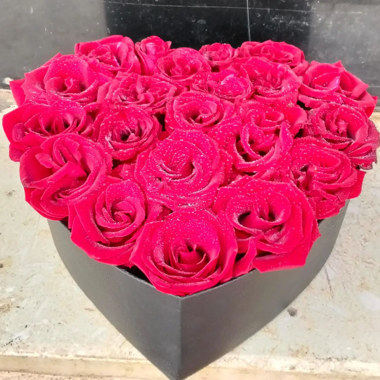 تضفي الورود الحمراء جمالاً ورونقاً خاصاً على كل لحظة، بينما يضيف تصميم الصندوق الفريد لمسة من الفخامة. تم اختيار كل وردة بعناية لضمان الجودة والبهاء، مما يجعل هذا الصندوق ليس مجرد هدية، بل تجربة عاطفية لا تُنسى.