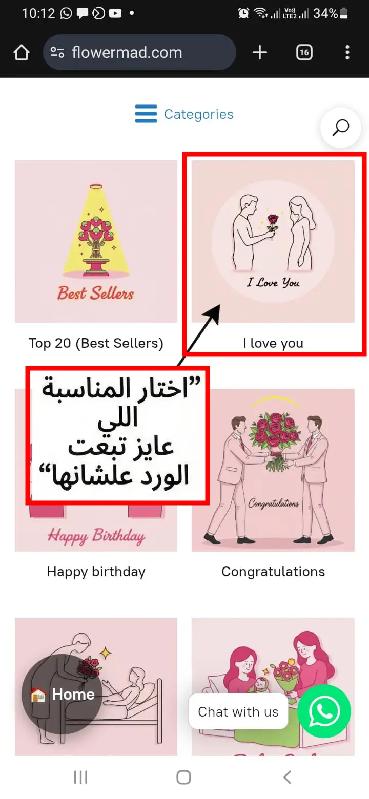 اضغط على أي فئة من الفئات بالأسفل لعرض كل الأشكال المتاحة واختيار زهورك